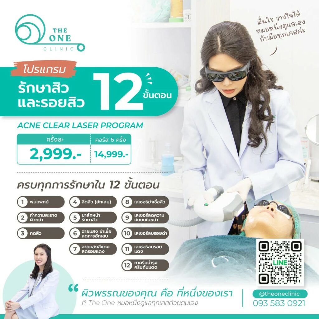 คอร์สเลเซอร์สิว 12 ขั้นตอนที่ The One Clinic ราคาเท่าไหร่